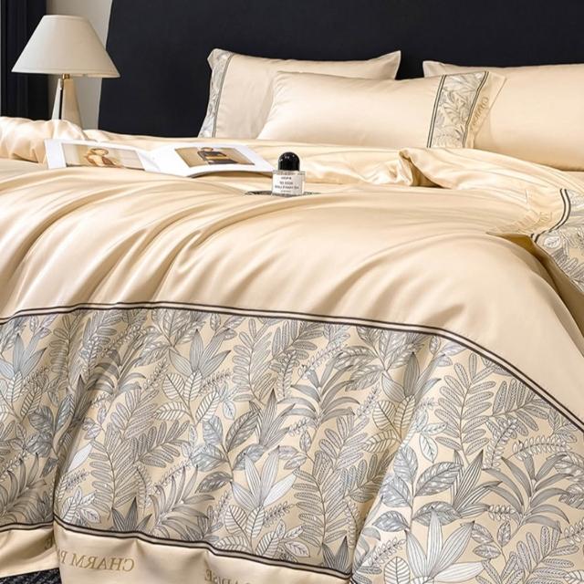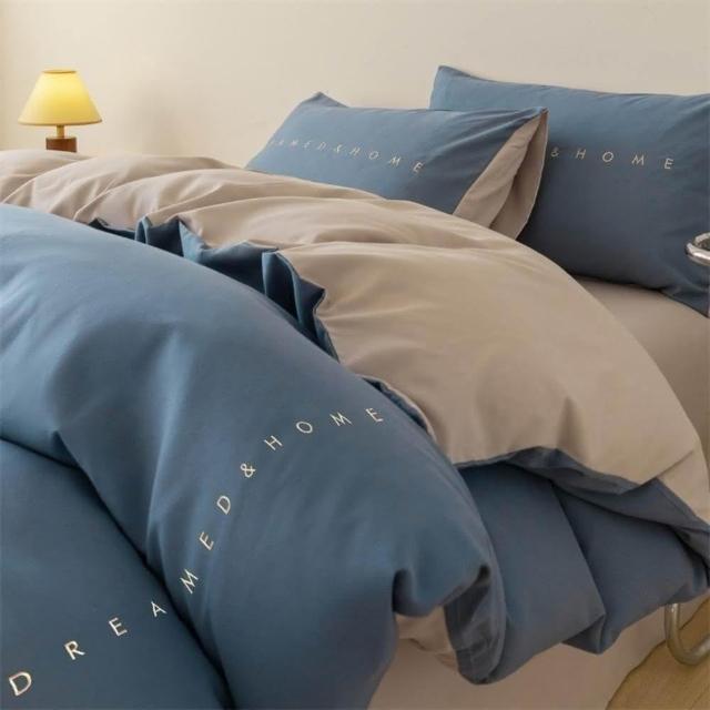 Arvo Home 蒔桄家居輕奢感刺繡被套床包組(裸床包 英文字刺繡寢具 親膚床單 床包+枕套+被套 質感床包)