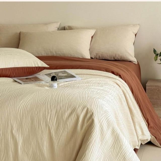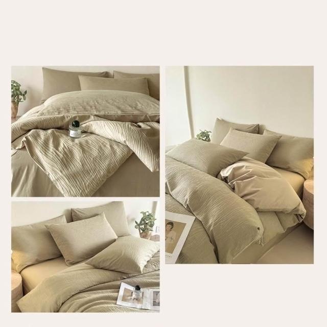 Arvo Home 蒔桄家居輕奢感紋理床包組(提花被套 舒眠床包 質感寢具 裸睡床單 質感床包 侘極風 水洗棉床包組 床包+枕套+被套)