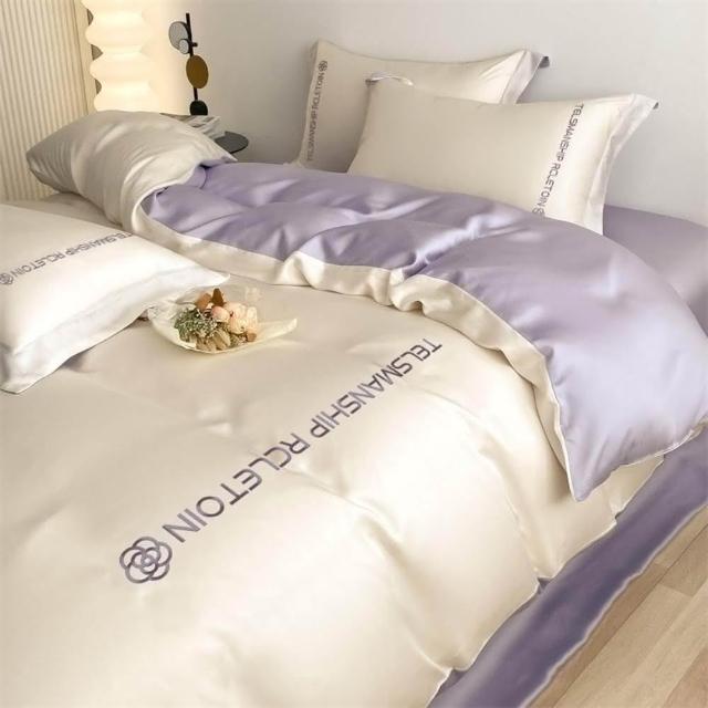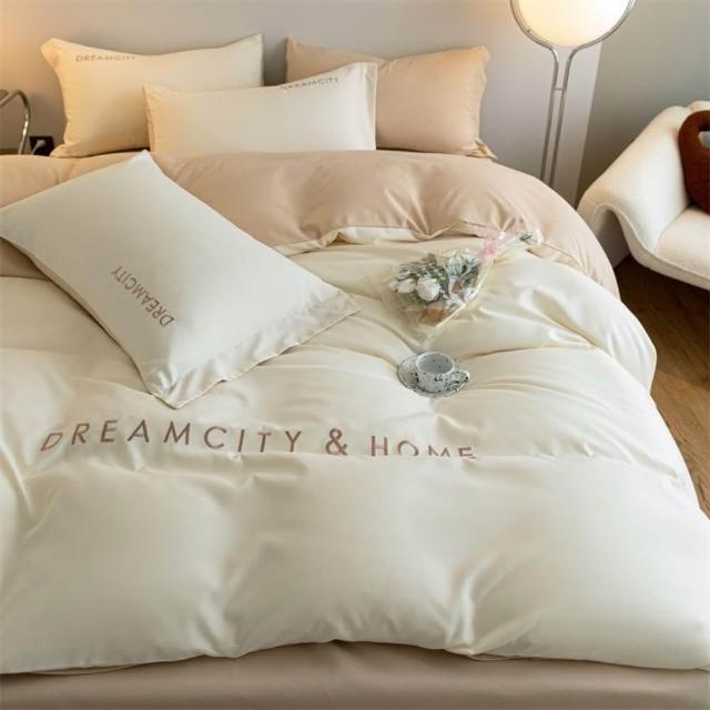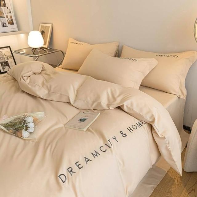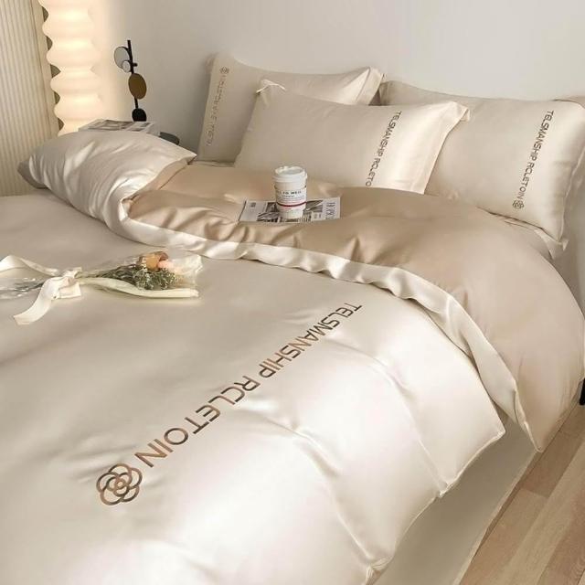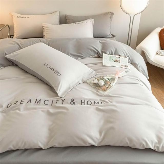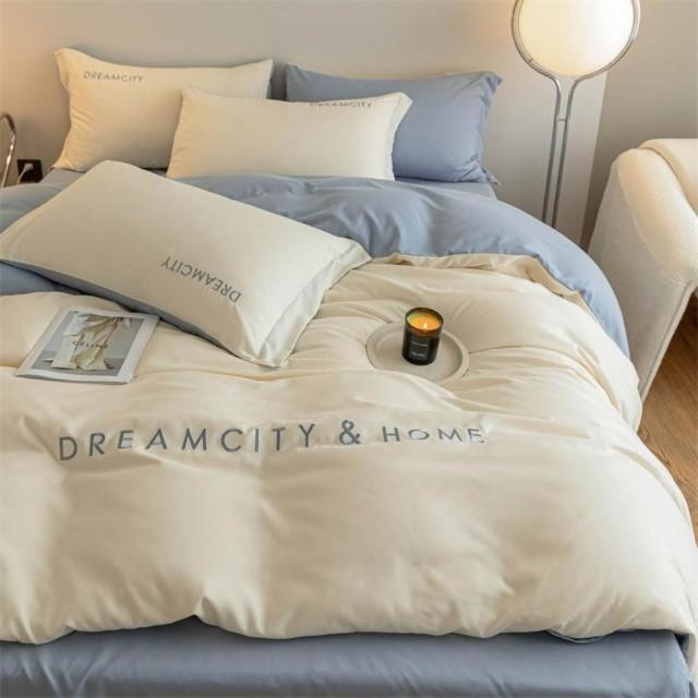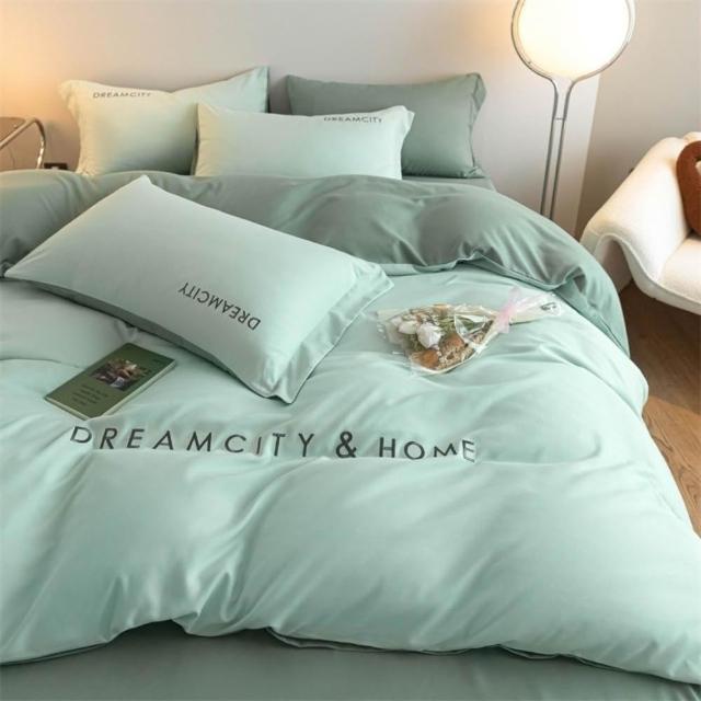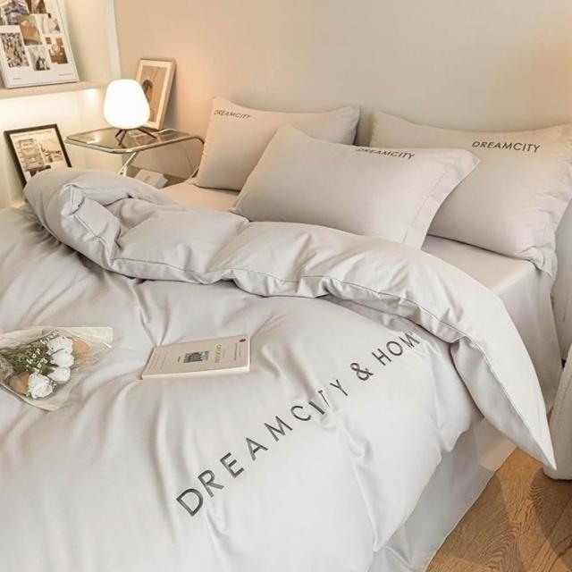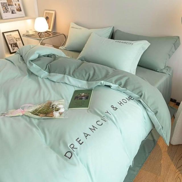 Arvo Home 蒔桄家居滑棉感刺繡床包被套四件組-雙人/加大(質感床包 刺繡被套床包 裸睡床包 薄被套床包 床包+枕套+被套四件組)
