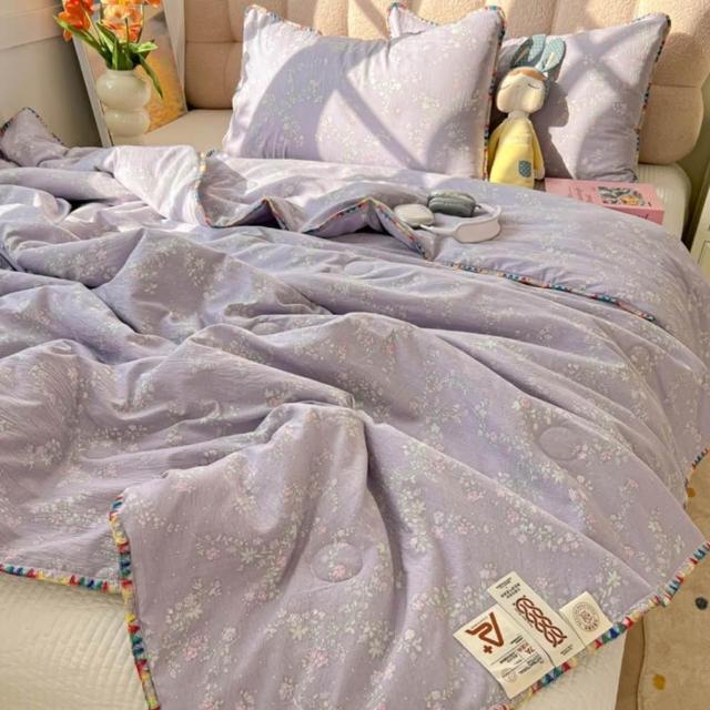 Arvo Home 蒔桄家居貝殼邊雙層紗棉柔夏被 (雙人空調被 兩用被 夏被 夏天薄被 輕柔四季被 絲柔被 露營被 童被 親膚涼被 小碎花被)