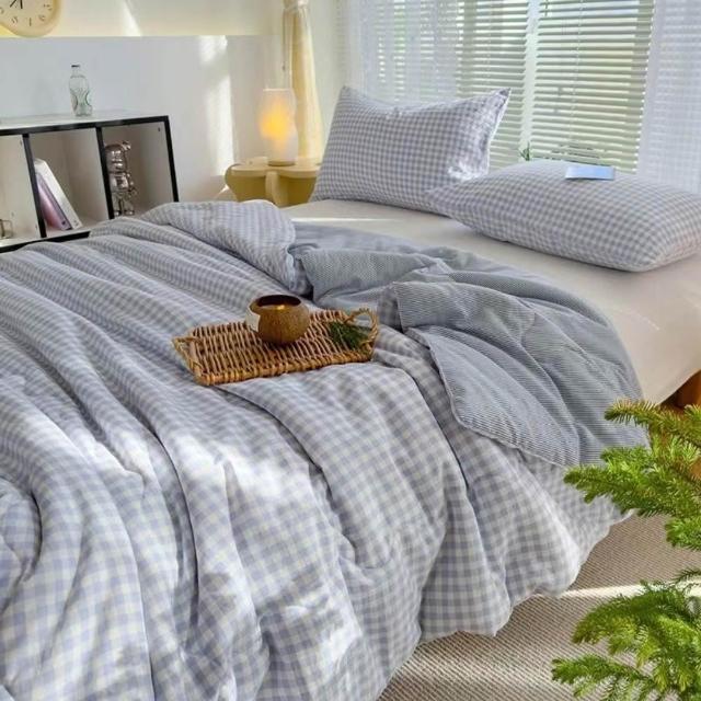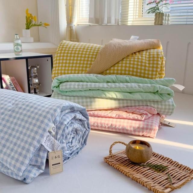 Arvo Home 蒔桄家居日系質感格子夏被 (加大涼被 雲朵被 夏被 透氣被 旅行蓋毯 空調被 親膚涼被 四季被 涼被 薄被 可水洗棉被 透氣被)