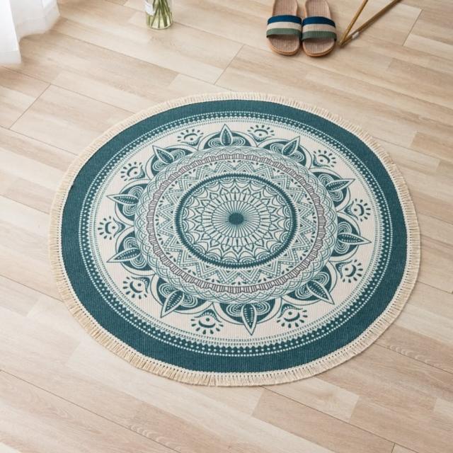 Arvo Home 蒔桄家居小圓桌墊 90公分 曼陀羅圓型地墊 (餐桌墊 棉麻地毯 瑜伽毯 曼陀羅毯 流蘇毯 小圓毯 單人餐桌墊 餐桌巾 荷葉邊餐巾)