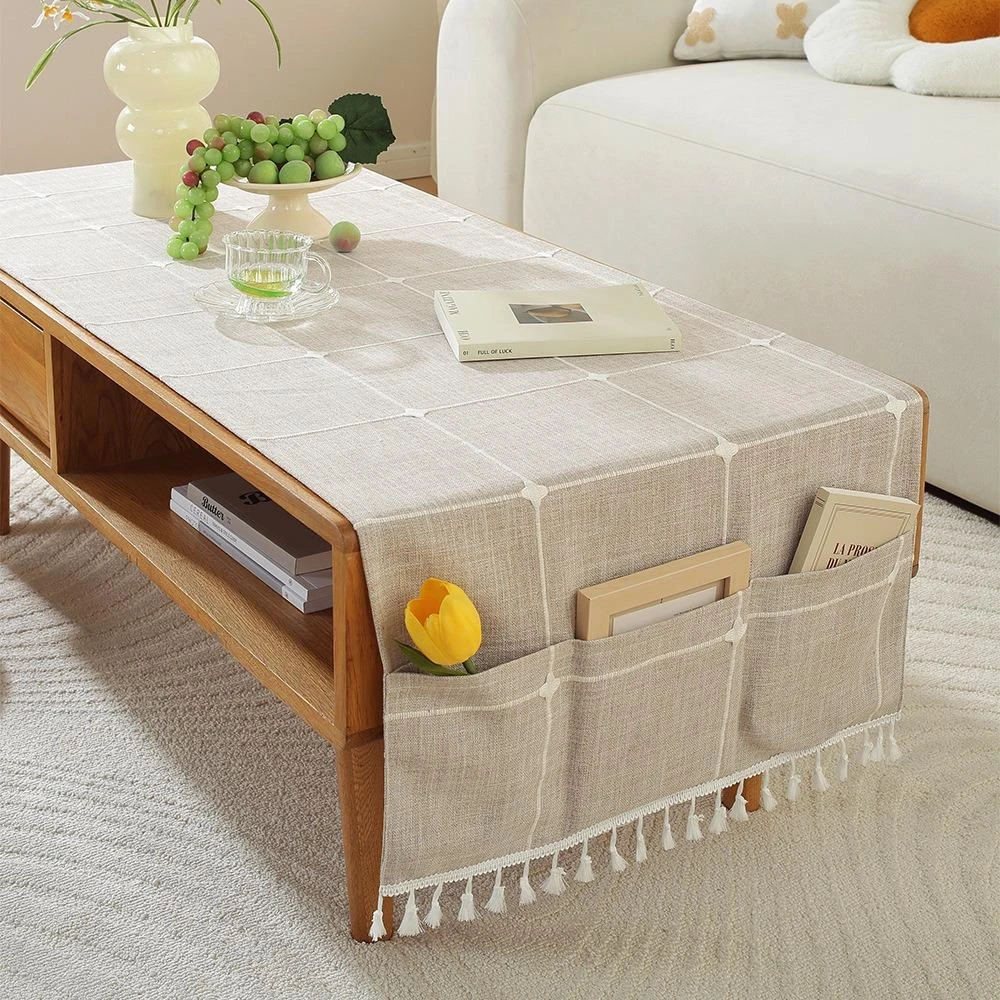 Arvo Home 蒔桄家居日系棉麻質感方格紋理桌布(茶几蓋布 防塵蓋布 電視櫃蓋布 電視罩 桌布 桌旗 長桌巾)