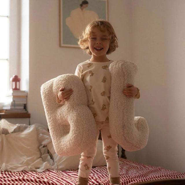- 羊羔絨質感英文字母抱枕