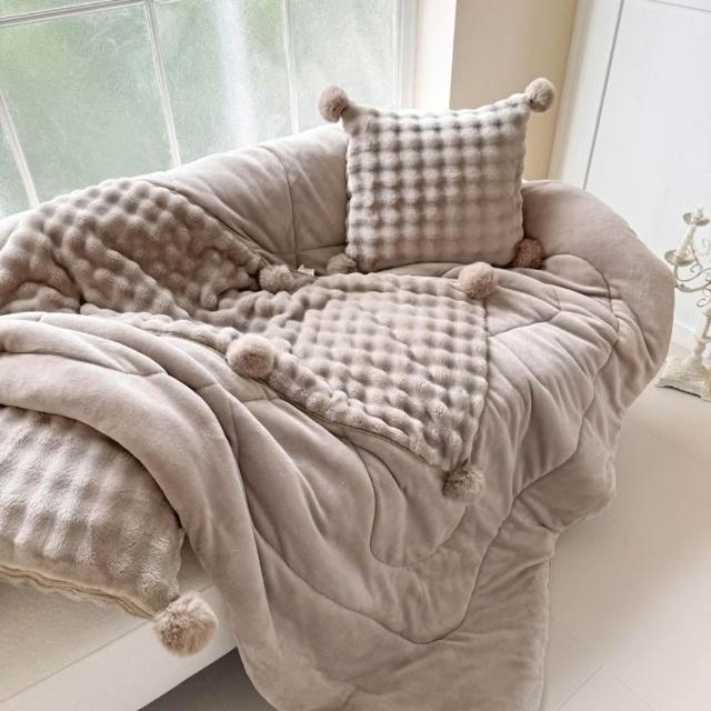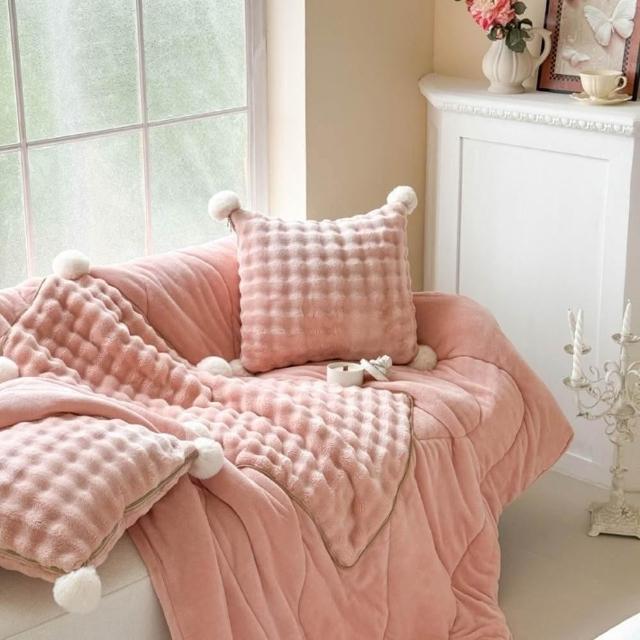 - 收納是柔軟抱枕 展開是蓋被