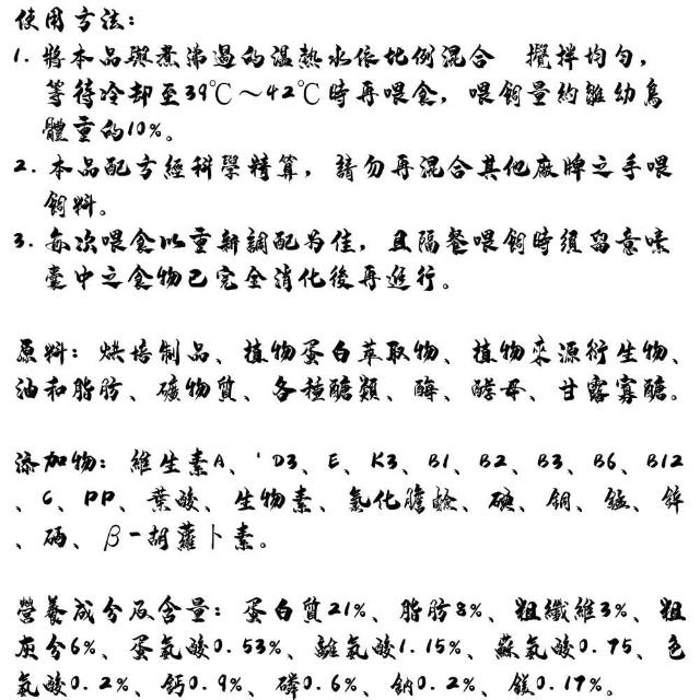 提供幼鳥最佳的營養密度健康成長