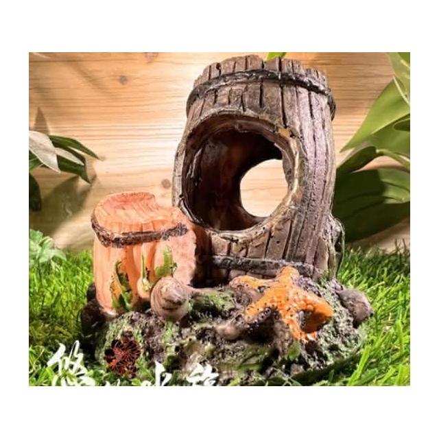 YOYO 悠悠水族悠悠兩棲爬蟲特寵 造景橡木桶 魚缸造景 水族 造景 木桶 水族造景飾品