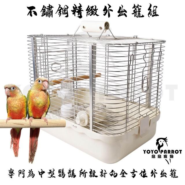 YOYO 悠悠水族【悠悠寵物】不鏽鋼精緻外出籠組 適用中小型鸚鵡 蜜袋鼯 鼠兔等小動物 堅固耐用 外出籠 鸚鵡用品專區