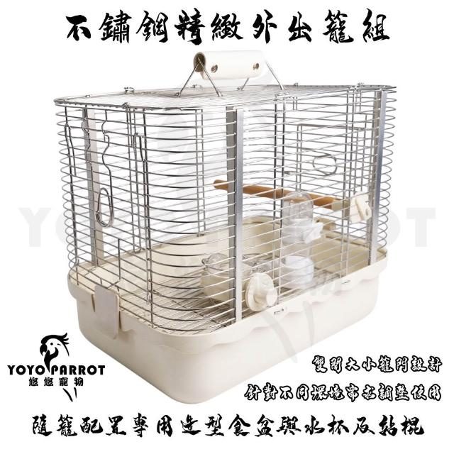 YOYO 悠悠水族【悠悠寵物】不鏽鋼精緻外出籠組 適用中小型鸚鵡 蜜袋鼯 鼠兔等小動物 堅固耐用 外出籠 鸚鵡用品專區
