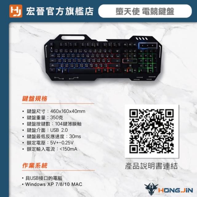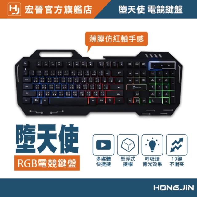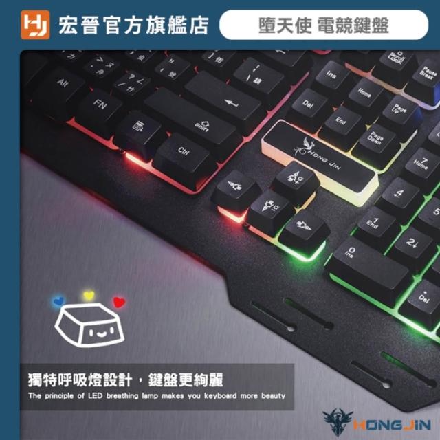 HONG JINHJ-221 有線電競鍵盤 薄膜式(紅軸手感 呼吸燈 電競鍵盤 RGB電競鍵盤)