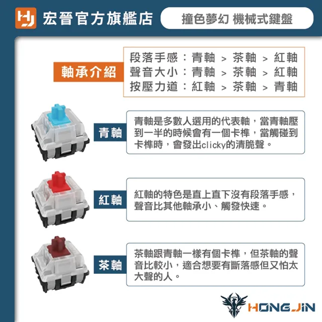 HONG JIN撞色夢幻 電競機械式鍵盤(電競鍵盤 鍵盤 機械式鍵盤 雷雕注音 白光 呼吸燈 青軸 紅軸)