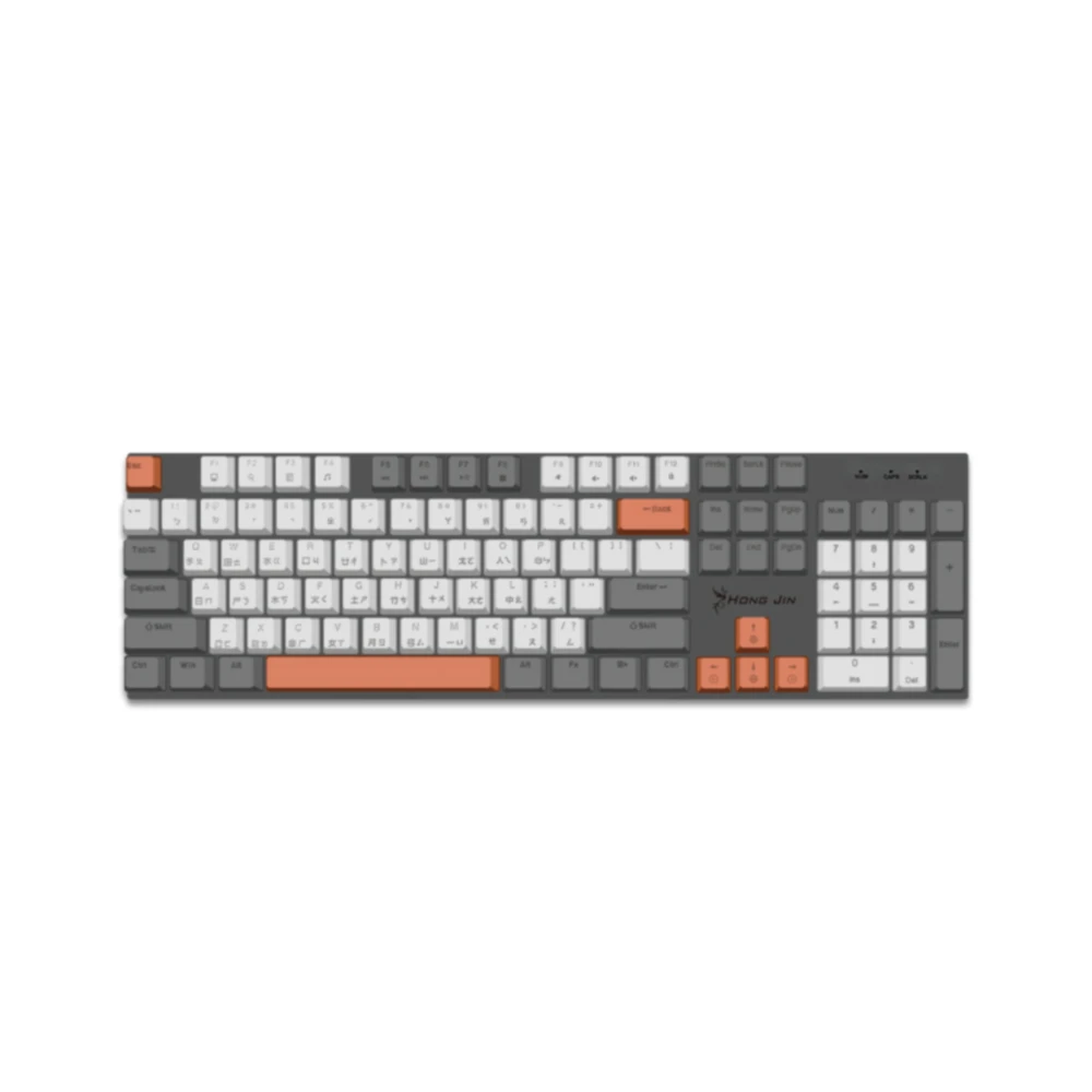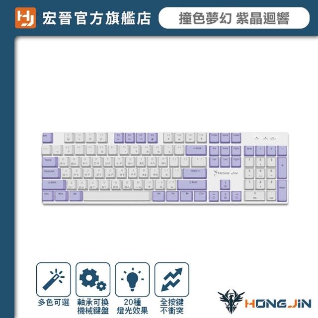 HONG JIN撞色夢幻 電競機械式鍵盤(電競鍵盤 鍵盤 機械式鍵盤 雷雕注音 白光 呼吸燈 青軸 紅軸)