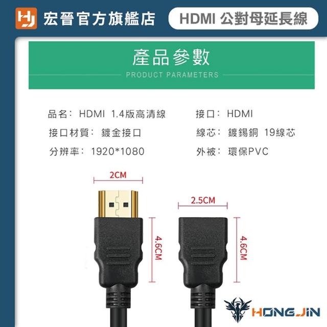 HONG JINHDMI延長線 HDMI公對母延長線(1.5米HDMI線 公對母影音延長線 支持高清1080P)