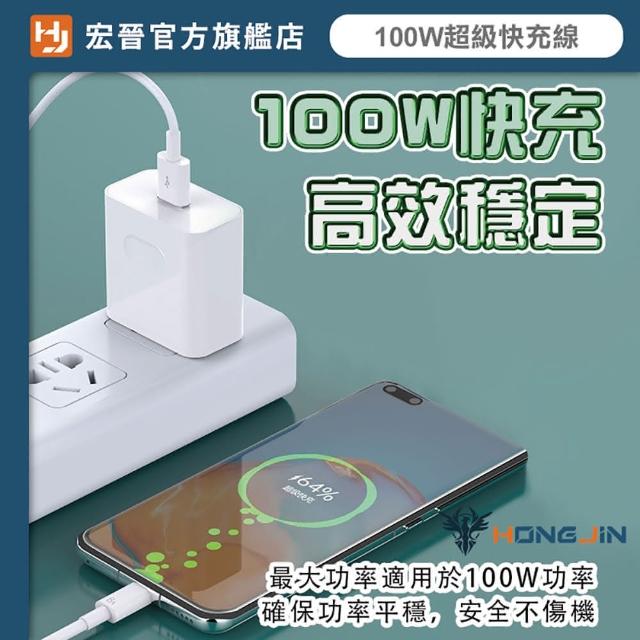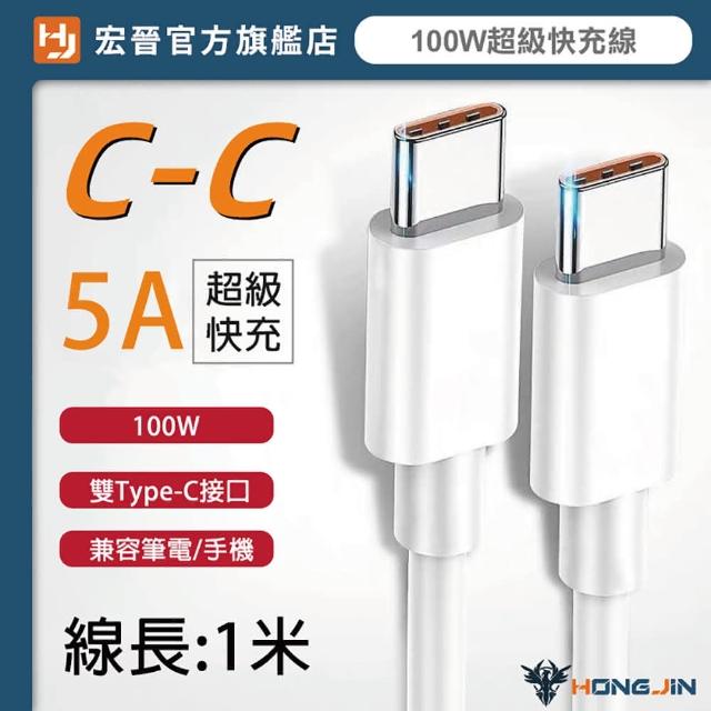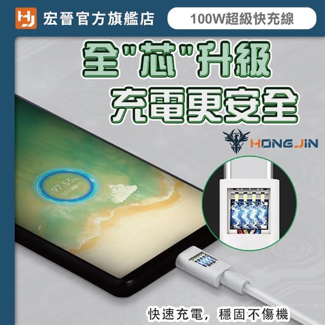 HONG JIN1米 100W超級快充線 C TO C(E-Marker芯片 六芯快充線 PD充電線 適用筆電 平板)