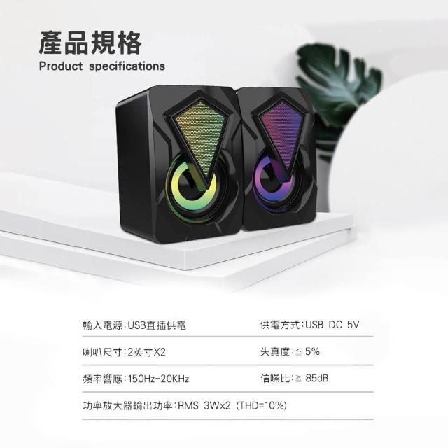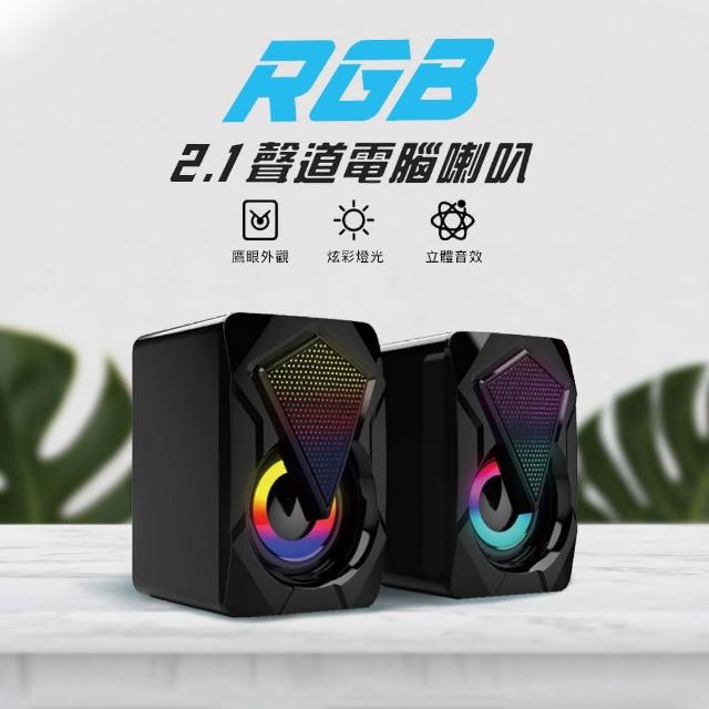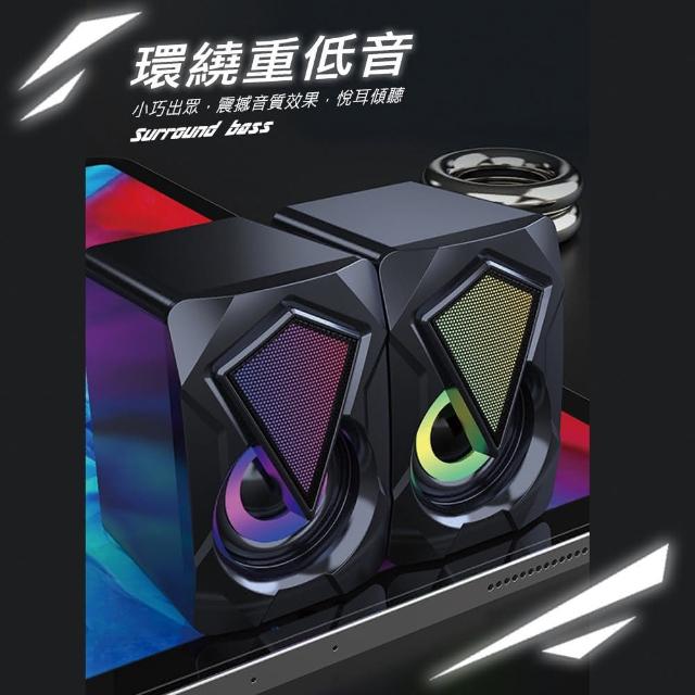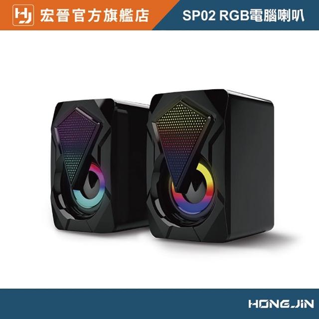 HONG JINSP02 RGB電腦喇叭(二件式 音響 多媒體 環繞重低音 立體聲 揚聲器 氣氛燈效)