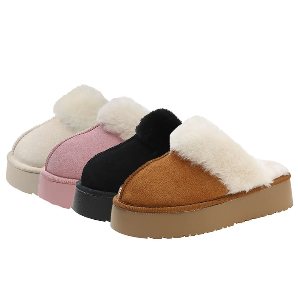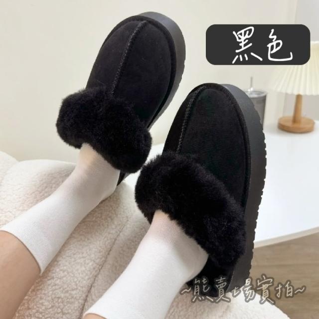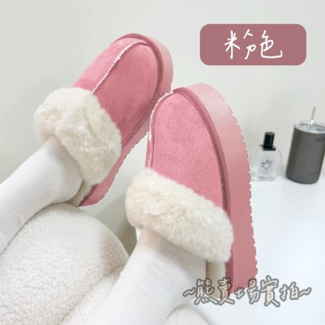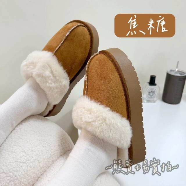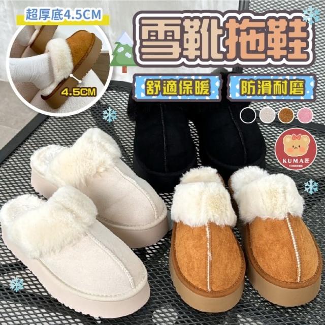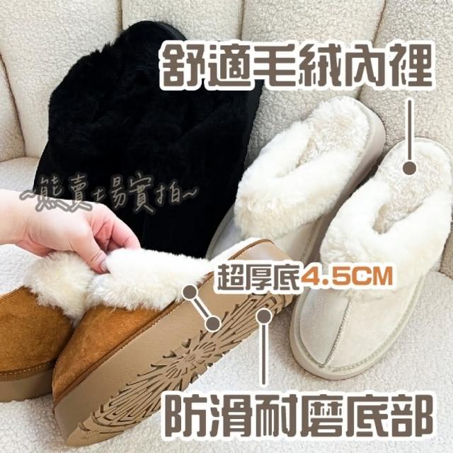 HONG JIN雪靴毛絨拖鞋 4.5CM超厚底(厚底拖鞋 毛絨拖鞋 雪靴拖鞋 時尚包頭設計 舒適加厚毛絨)