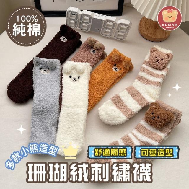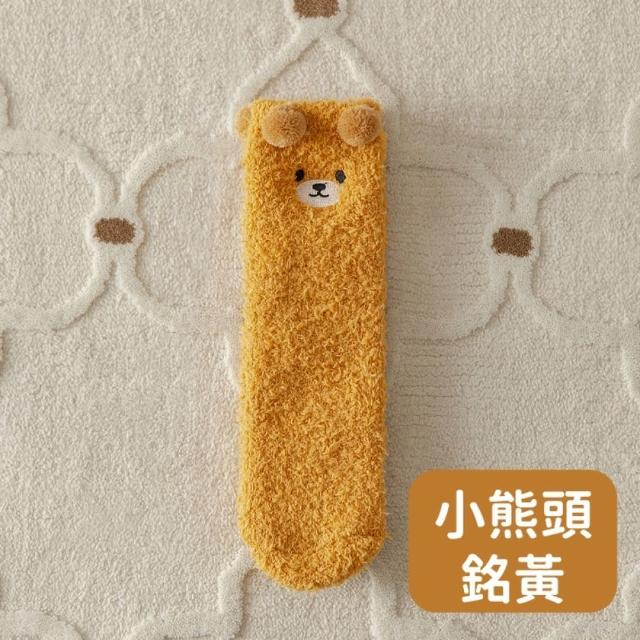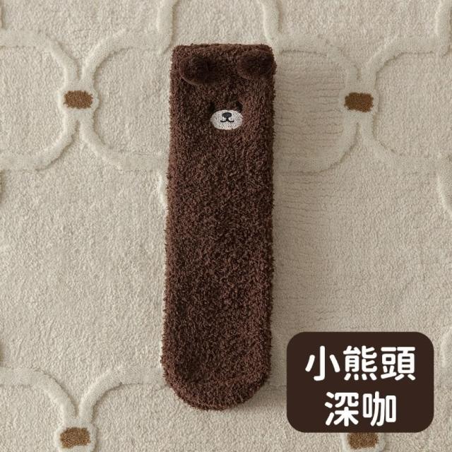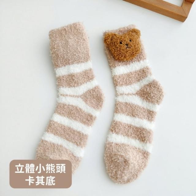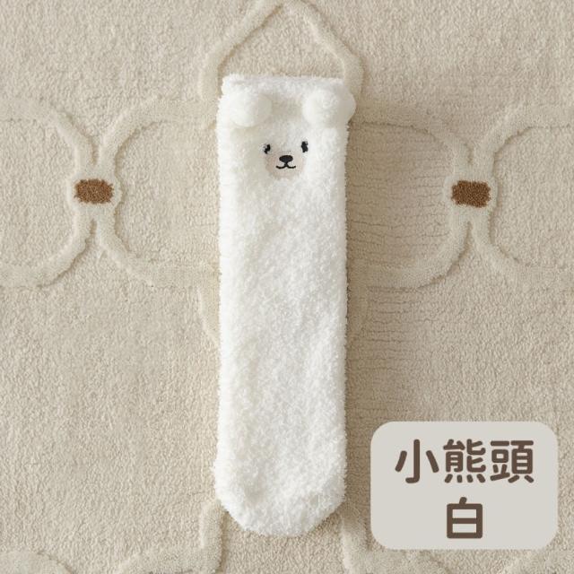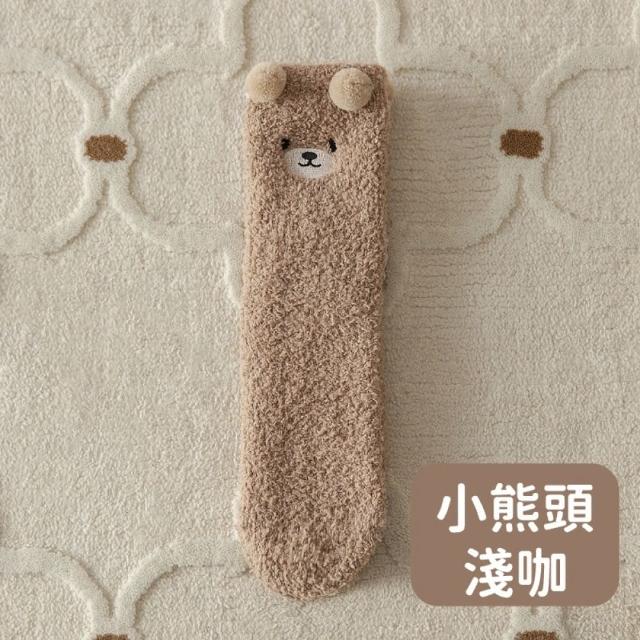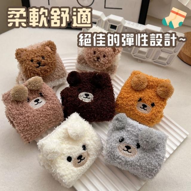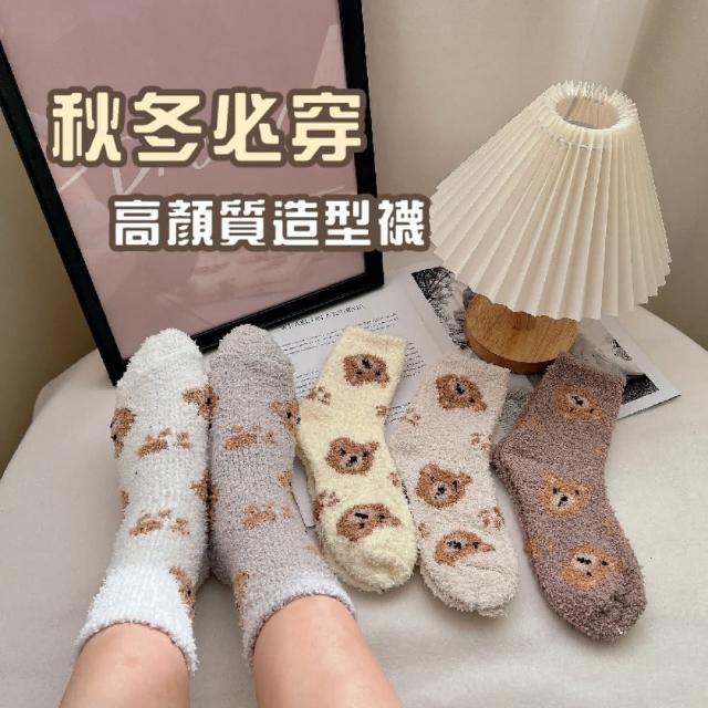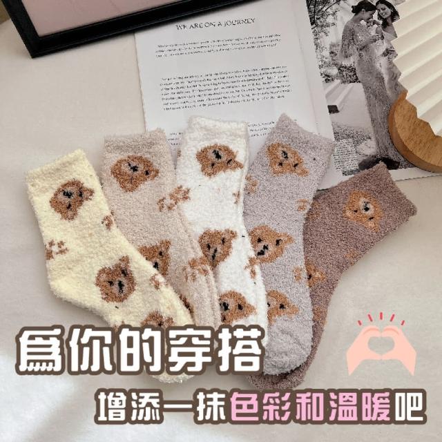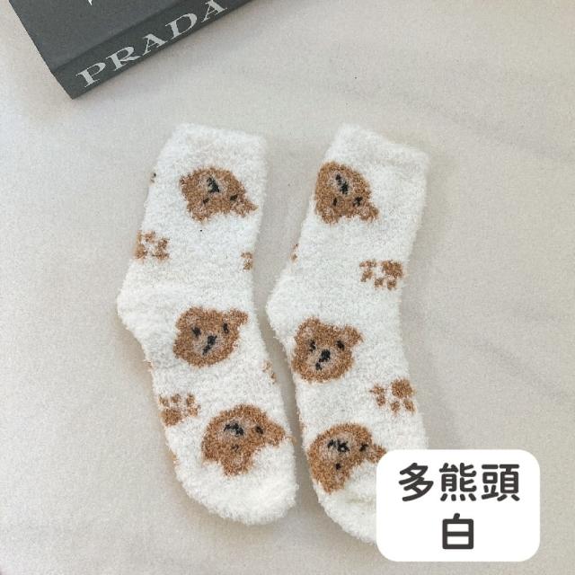 HONG JIN多款小熊造型珊瑚絨刺繡襪(卡通造型襪 可愛襪 加厚毛绒 中筒襪 刺繡襪 小熊襪)