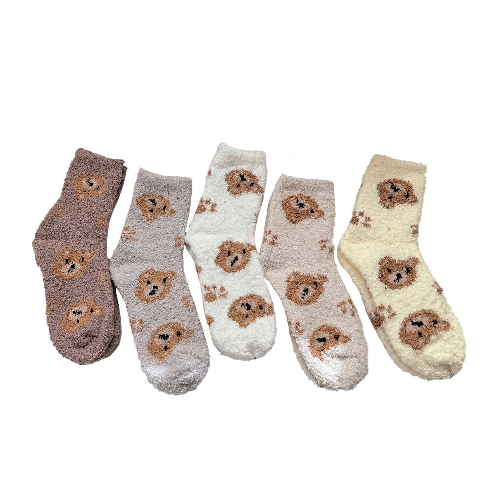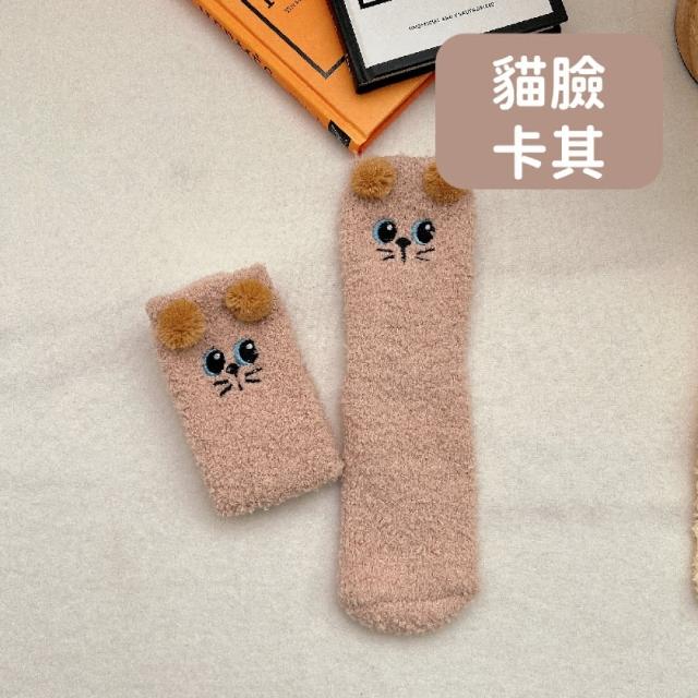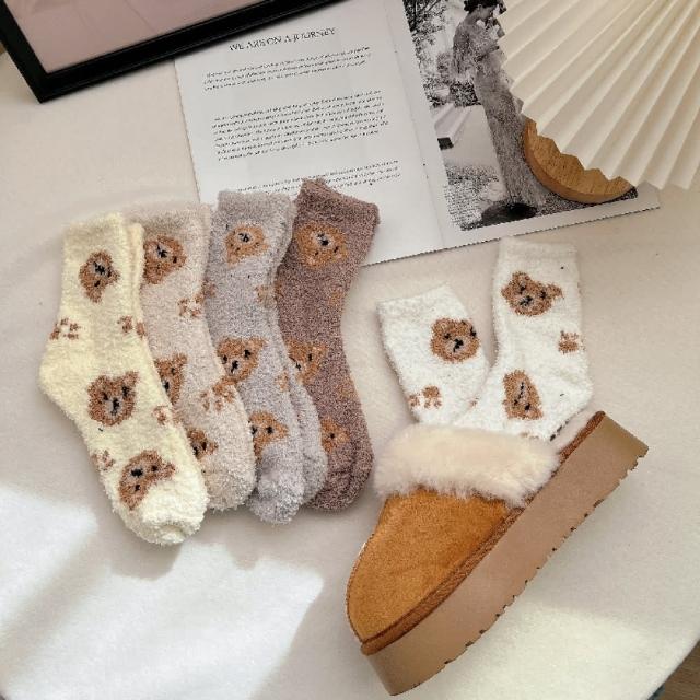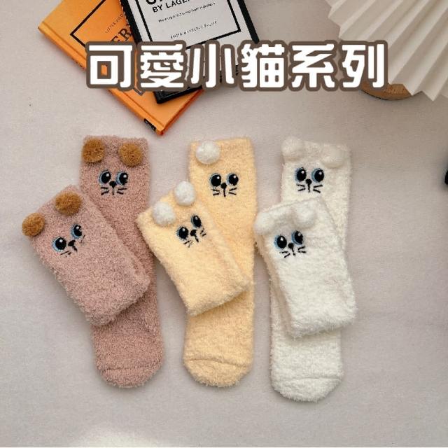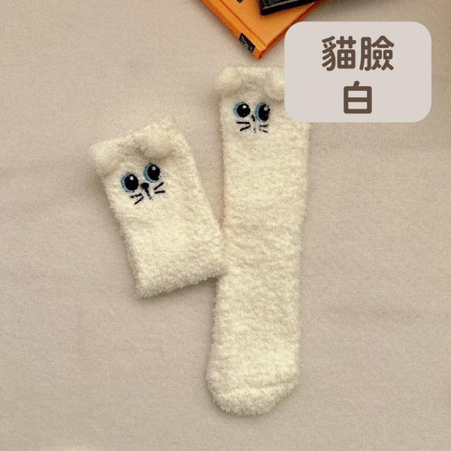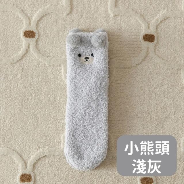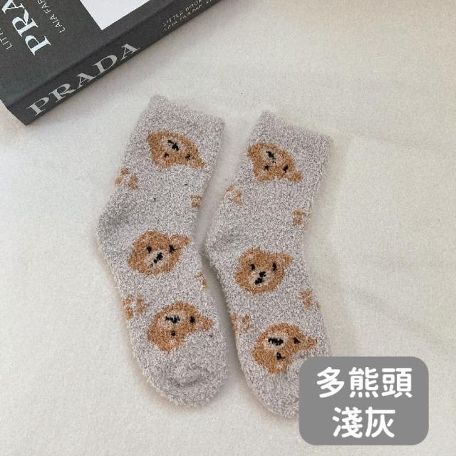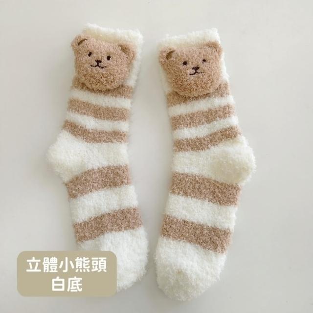 HONG JIN多款小熊造型珊瑚絨刺繡襪(卡通造型襪 可愛襪 加厚毛绒 中筒襪 刺繡襪 小熊襪)