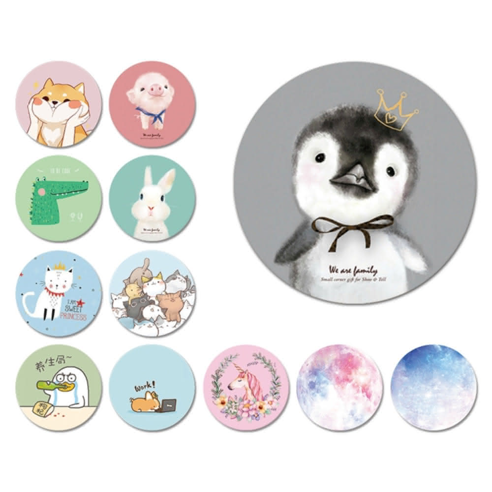 HONG JIN圓形卡通滑鼠墊(可愛小鼠墊 辦公鼠墊 迷你鼠墊 圓形 止滑鼠墊 電腦滑鼠墊 鍵盤墊)
