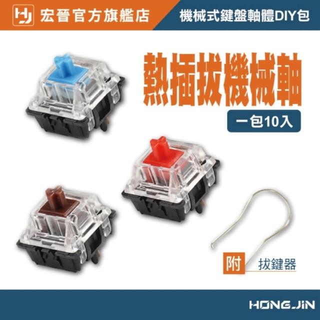 HONG JIN機械式鍵盤軸體DIY包 一包10入(熱插拔機械軸 青軸 紅軸 茶軸 三種可選 附拔軸器)