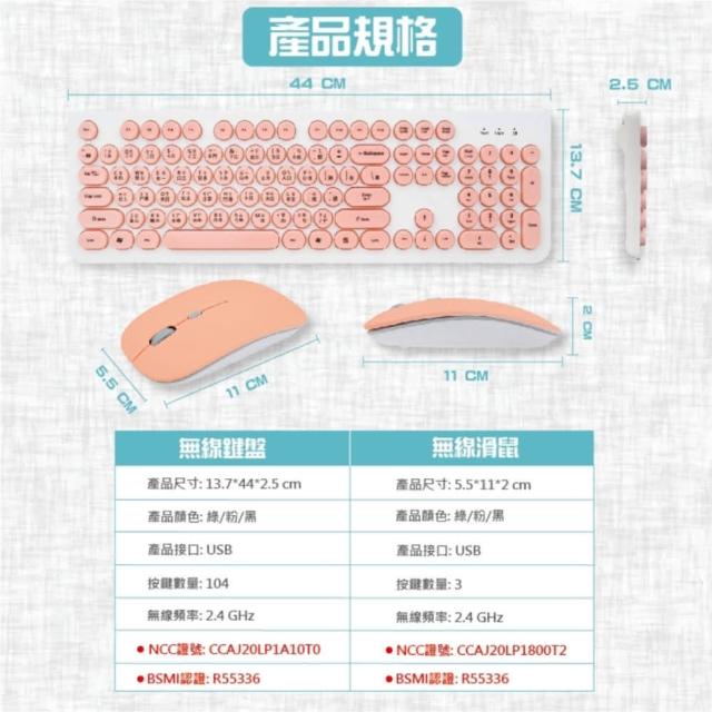 HONG JINHJ215S 無線鍵盤滑鼠組(靜音按鍵設計 馬卡龍鍵鼠組 商務鍵盤 鍵鼠組 即插即用 注音倉頡鍵盤)