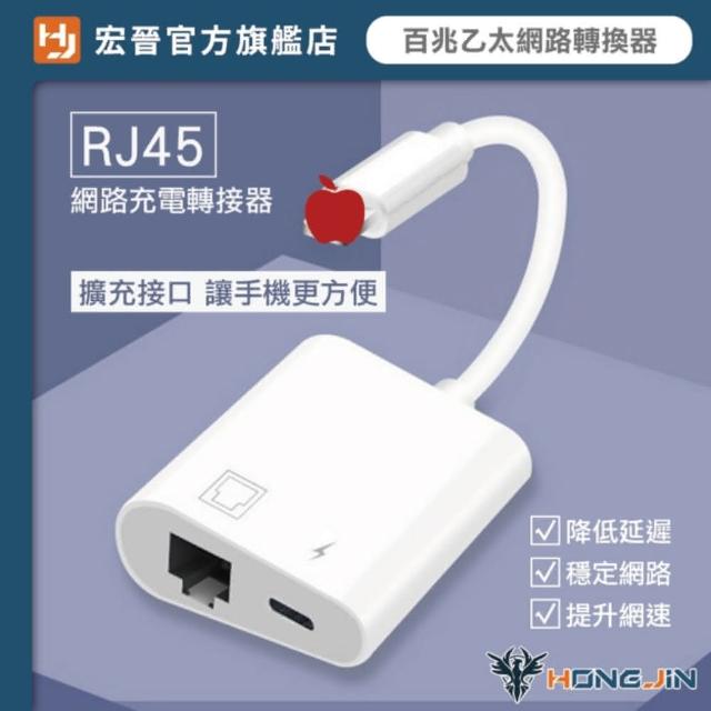 HONG JIN百兆乙太網路轉換器(帶供電孔 TYPE-C 水果可用 手機平板筆電皆可使用 TYPE-C轉RJ45)