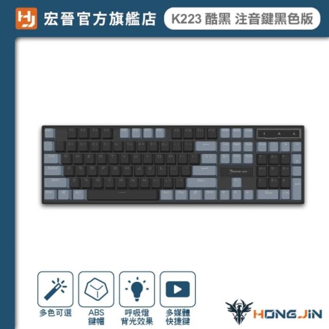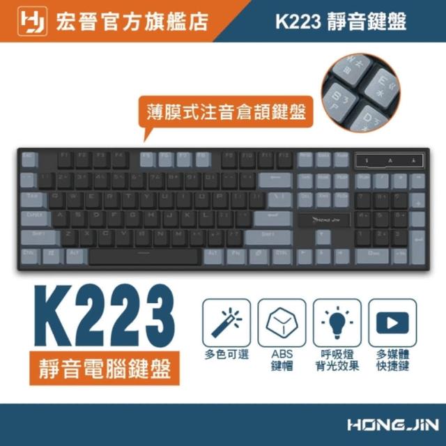 HONG JINK223 靜音電腦鍵盤(極簡桌面 辦公文書鍵盤 USB白光有線鍵盤 台灣注音鍵盤)