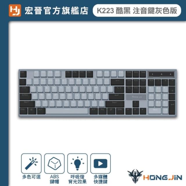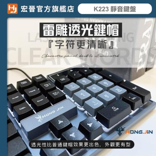 HONG JINK223 靜音電腦鍵盤(極簡桌面 辦公文書鍵盤 USB白光有線鍵盤 台灣注音鍵盤)