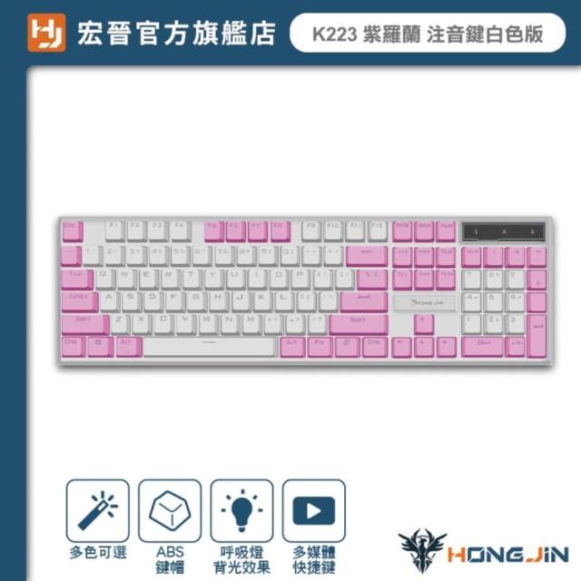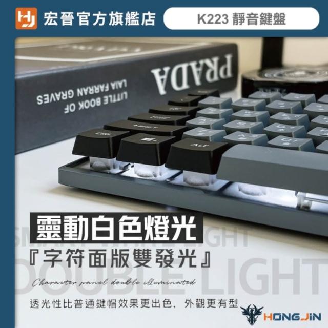 HONG JINK223 靜音電腦鍵盤(極簡桌面 辦公文書鍵盤 USB白光有線鍵盤 台灣注音鍵盤)