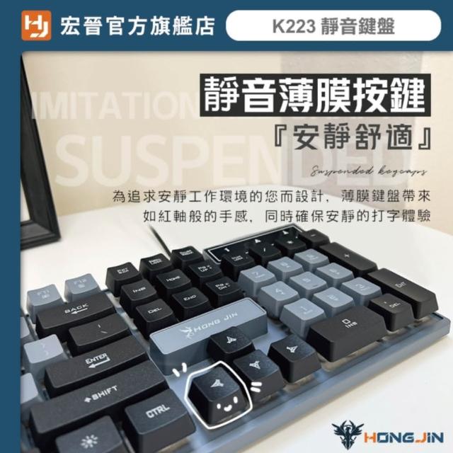 HONG JINK223 靜音電腦鍵盤(極簡桌面 辦公文書鍵盤 USB白光有線鍵盤 台灣注音鍵盤)