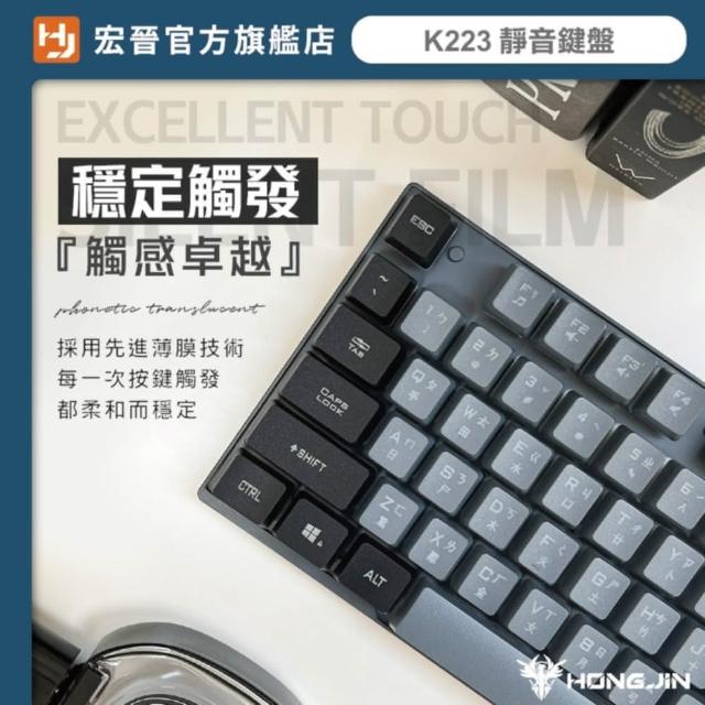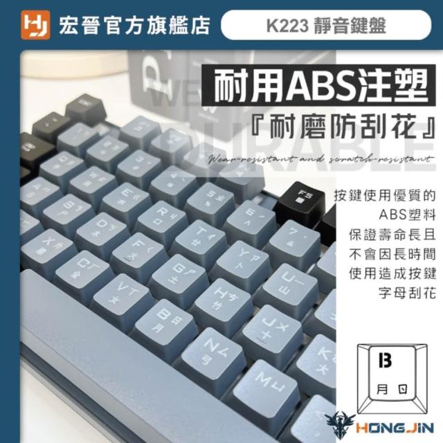 HONG JINK223 靜音電腦鍵盤(極簡桌面 辦公文書鍵盤 USB白光有線鍵盤 台灣注音鍵盤)