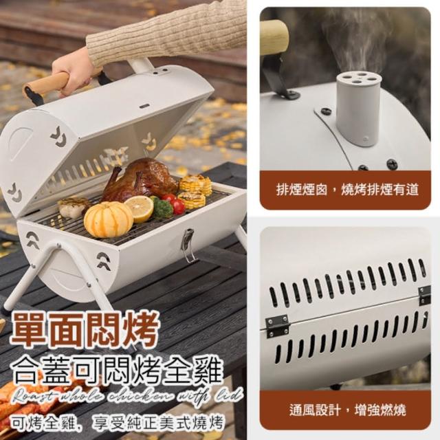HONG JIN露營摺疊燒烤爐 送烤盤 時尚燒烤爐(烤肉爐 雙層空間 收納方便 無煙燒烤爐)