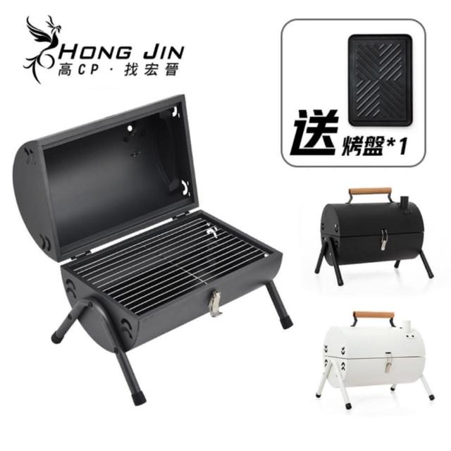 HONG JIN露營摺疊燒烤爐 送烤盤 時尚燒烤爐(烤肉爐 雙層空間 收納方便 無煙燒烤爐)