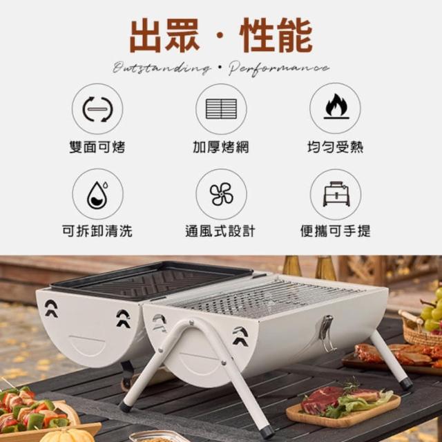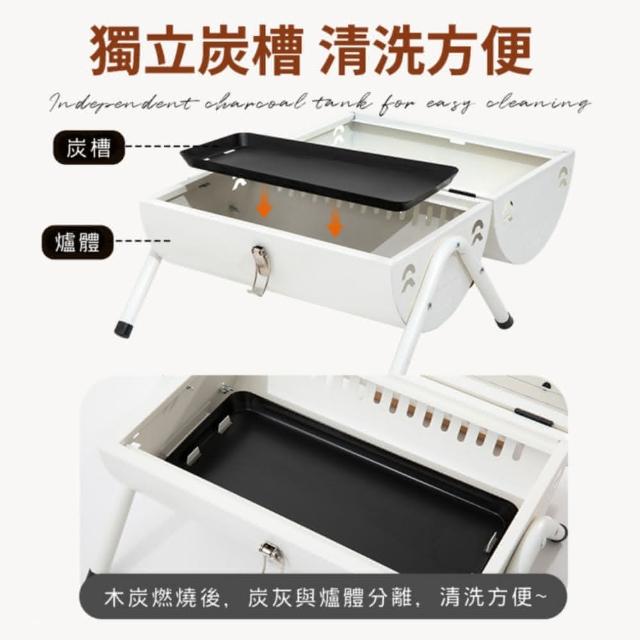 HONG JIN露營摺疊燒烤爐 送烤盤 時尚燒烤爐(烤肉爐 雙層空間 收納方便 無煙燒烤爐)