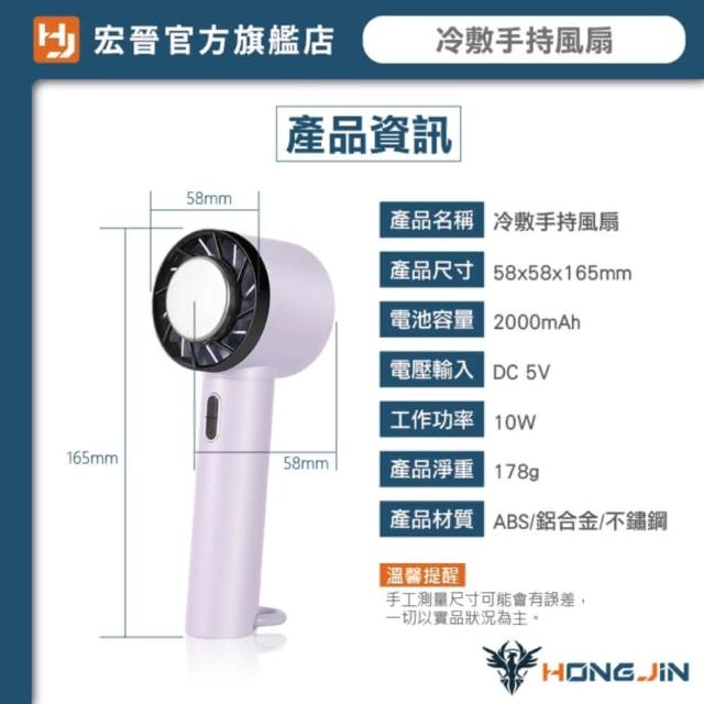 HONG JIN冷敷手持風扇 冰敷風扇 手持風扇(隨身小風扇 便攜式電風扇 製冷風扇 戶外掛扣風扇 桌面)
