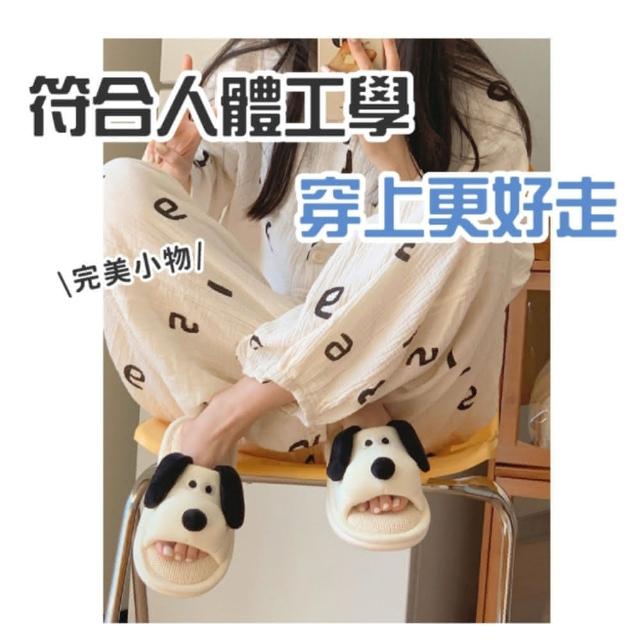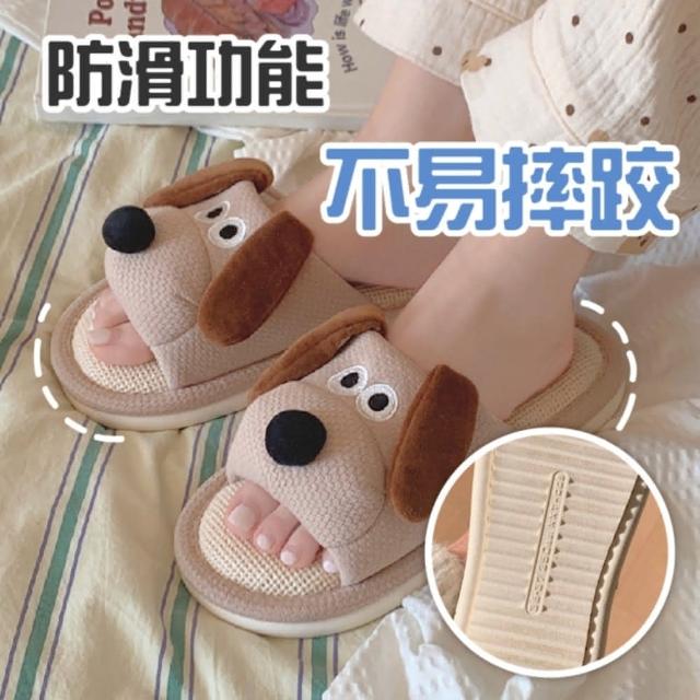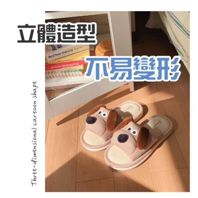 HONG JIN掌門狗棉麻透氣拖鞋 輕便舒適 透氣拖鞋(愛掌門狗造型 室內外使用 掌門狗 拖鞋 可爱居家拖鞋)