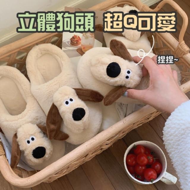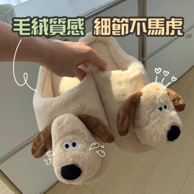 HONG JIN掌門狗毛絨立體造型室內拖鞋(室內拖鞋 毛絨 防滑設計 拖鞋 毛絨拖鞋 居家 室內 防滑)