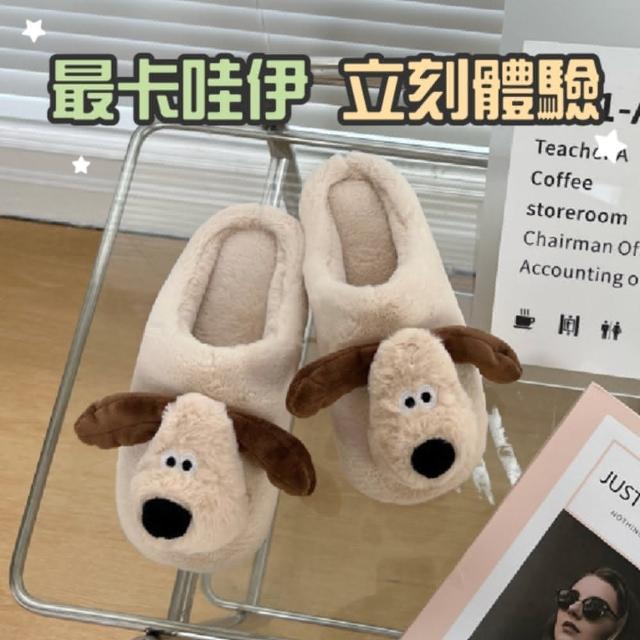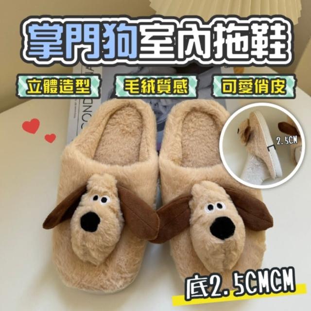 HONG JIN掌門狗毛絨立體造型室內拖鞋(室內拖鞋 毛絨 防滑設計 拖鞋 毛絨拖鞋 居家 室內 防滑)
