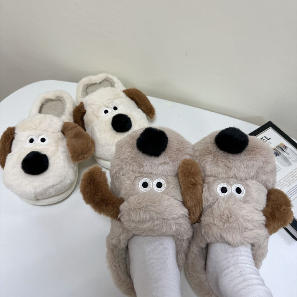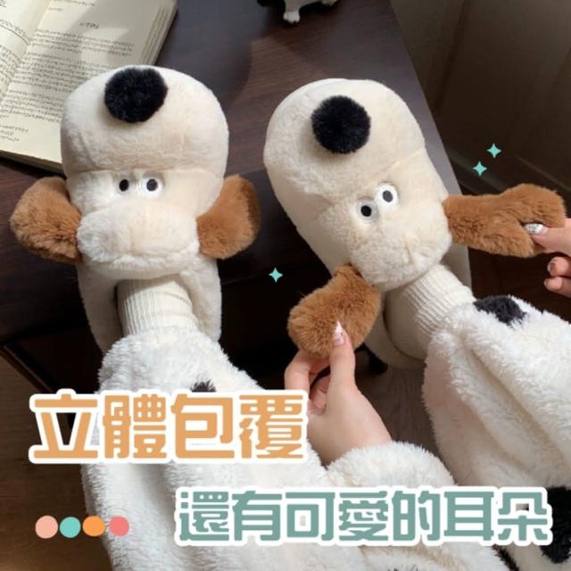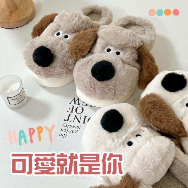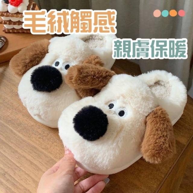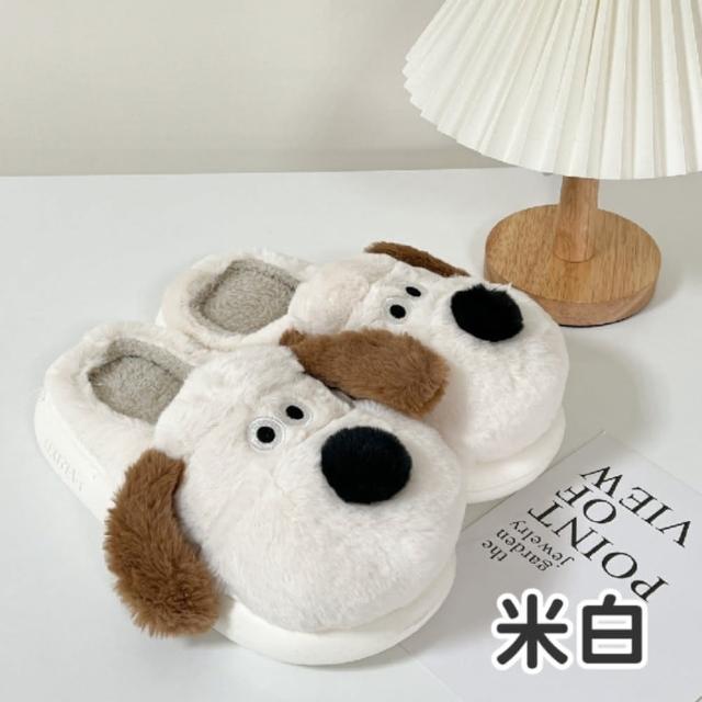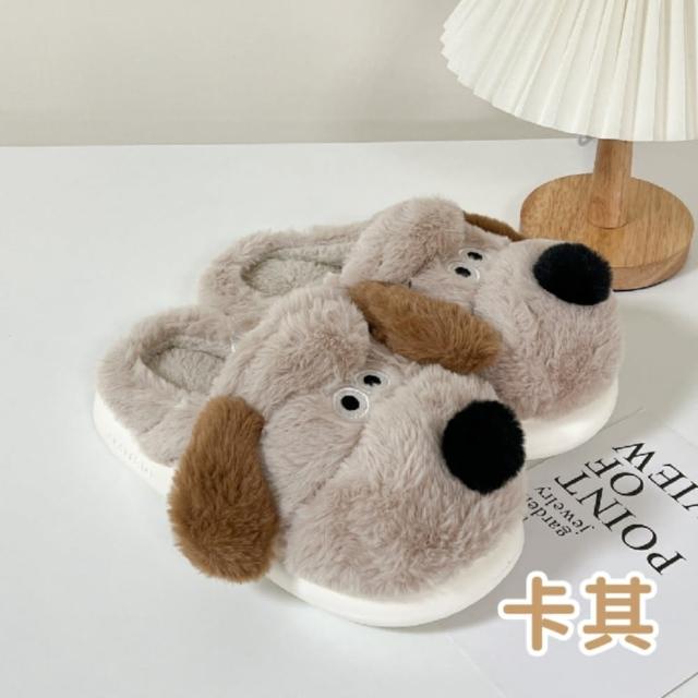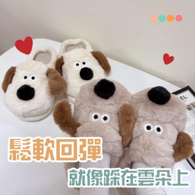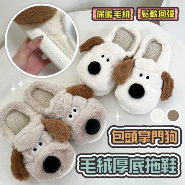 HONG JIN掌門狗造型毛絨厚底拖鞋(保暖舒適 秋冬毛絨拖鞋 居家室內拖鞋 掌門狗居家拖鞋)