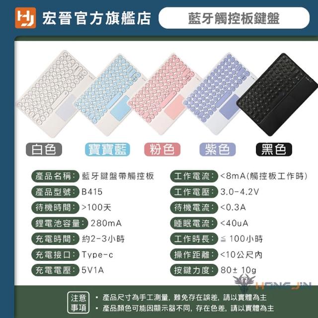 HONG JIN純英文鍵帽 B415 觸控板藍牙鍵盤(帶觸控板 觸控鍵盤 平板鍵盤 外接鍵盤 無線鍵盤 藍牙鍵盤)