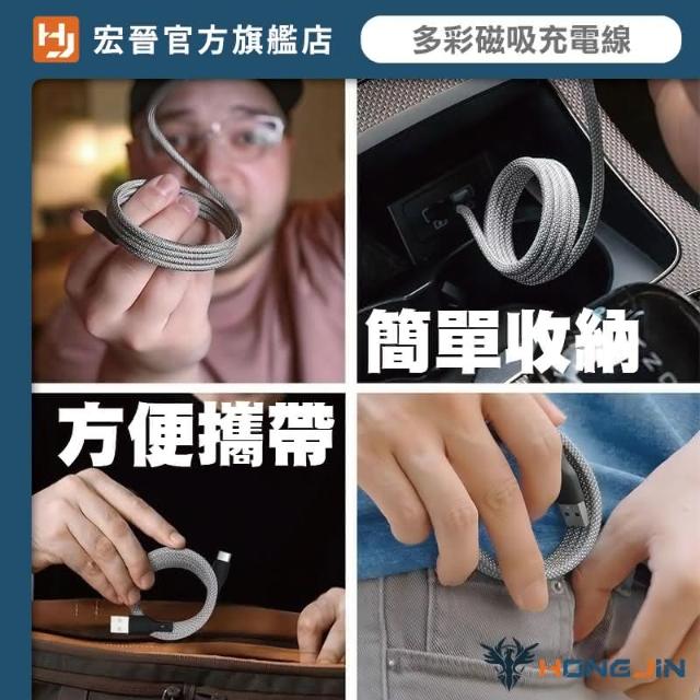 HONG JIN多彩磁吸充電線(手機充電線 磁吸收納手機充電線 尼龍編織 抗拉扯 type-c充電線 水果充電線)