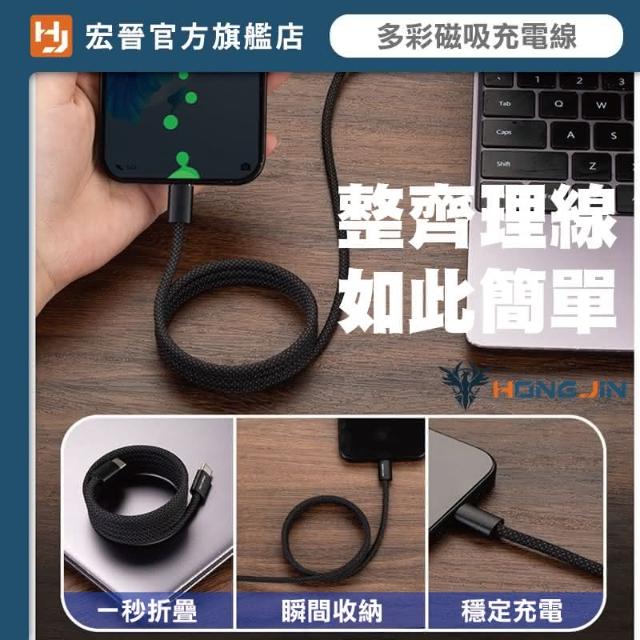 HONG JIN多彩磁吸充電線(手機充電線 磁吸收納手機充電線 尼龍編織 抗拉扯 type-c充電線 水果充電線)