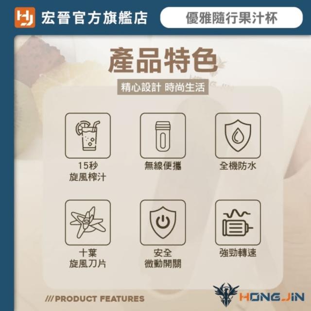 HONG JIN優雅隨行果汁杯 可碎冰 隨身果汁杯 時尚單品 迷你榨汁杯 USB充電 小型榨汁機 電動果汁機 電動榨汁機 附環保吸管
