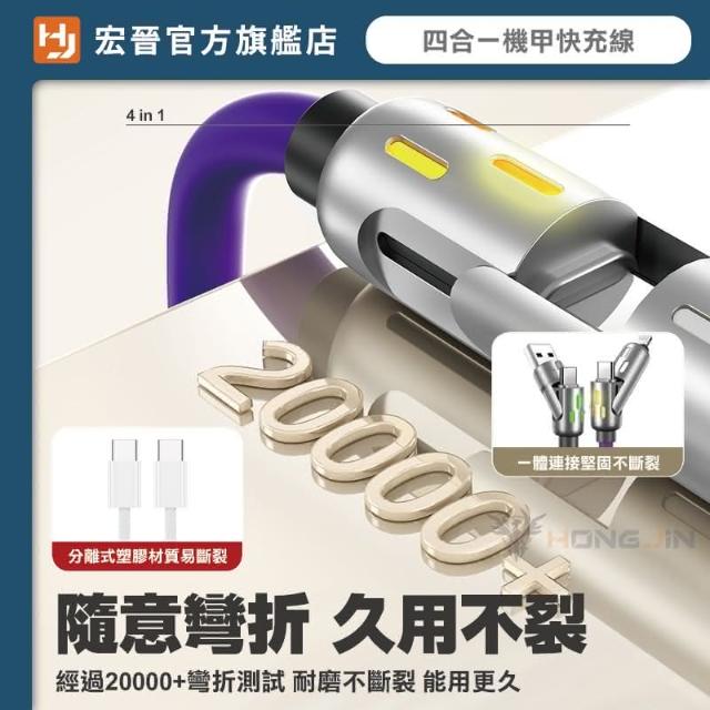 HONG JIN炫彩呼吸燈 四合一快充線 充電線 液態矽膠PD快充線 充電線 PD 65W 水果 Type-C 鋅合金 手機快充線