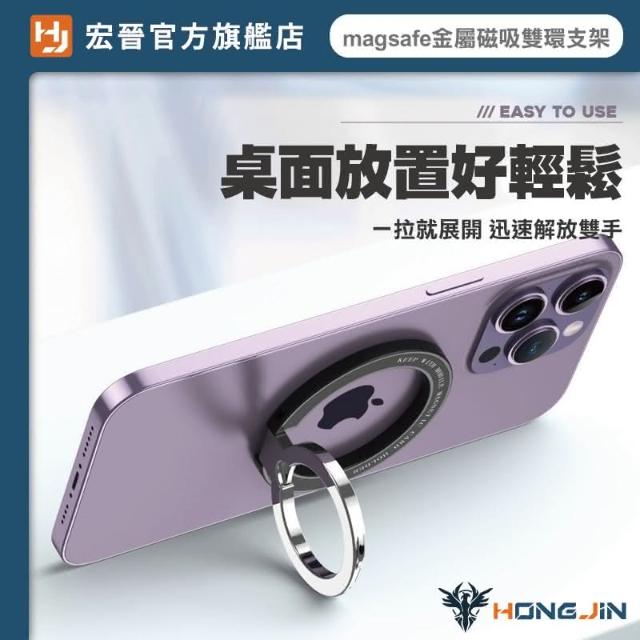 HONG JINmagsafe金屬磁吸雙環支架 金屬 指環扣 指環架 360度 磁吸旋轉 防丟 防落 防摔 支援magsafe充電