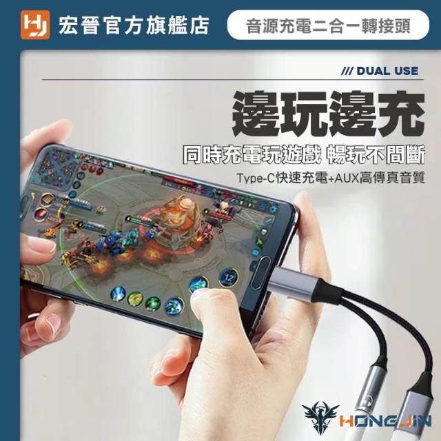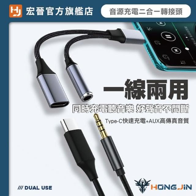 HONG JIN音源充電二合一轉接頭 音源+Type-c充電轉接器 手機平板適用 Type-c轉接頭 3.5mm耳機孔 可充電
