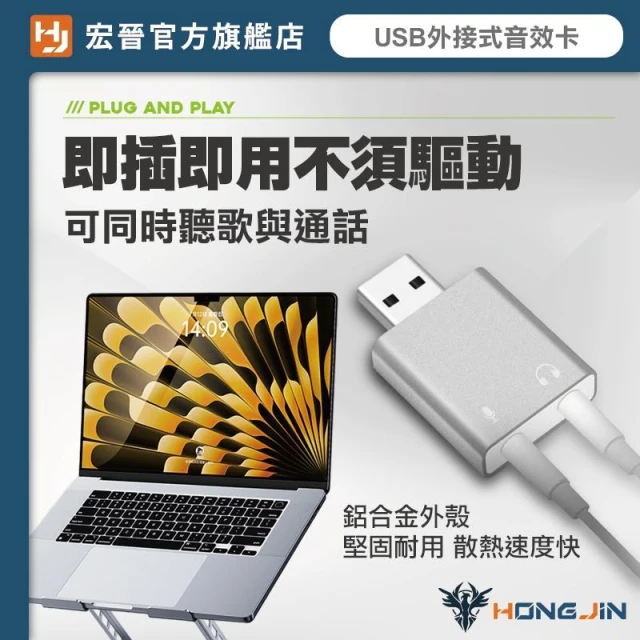 HONG JINUSB外接式音效卡 USB轉3.5mm 耳機 麥克風 輸出 即插即用 不須驅動 相容性高