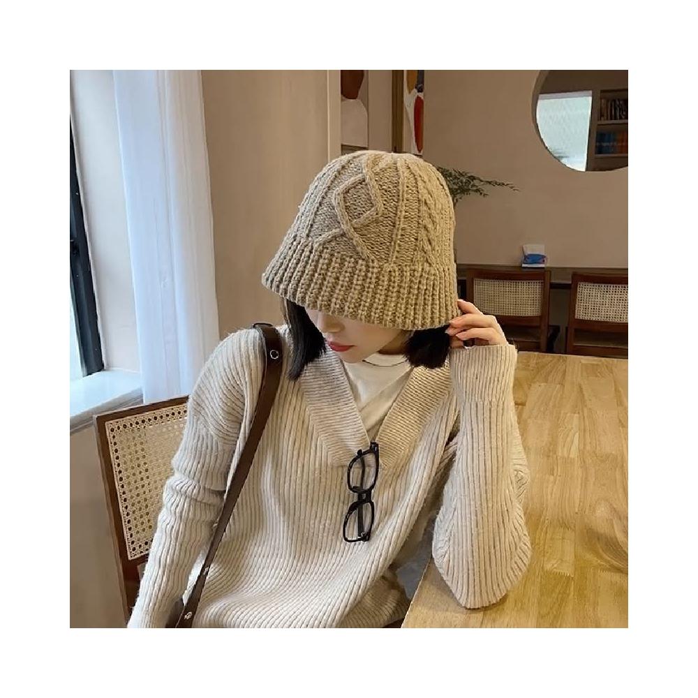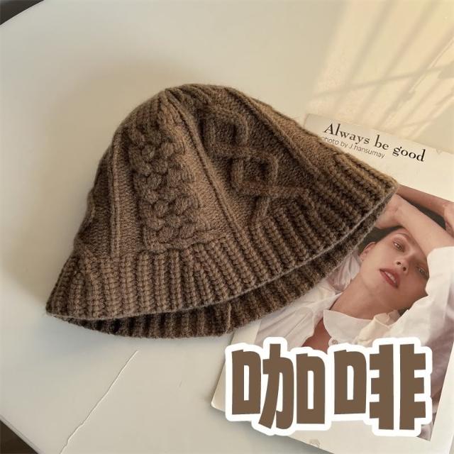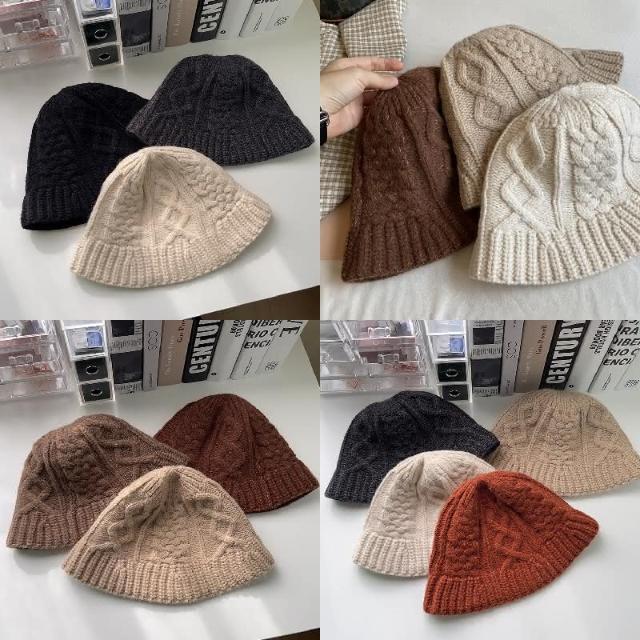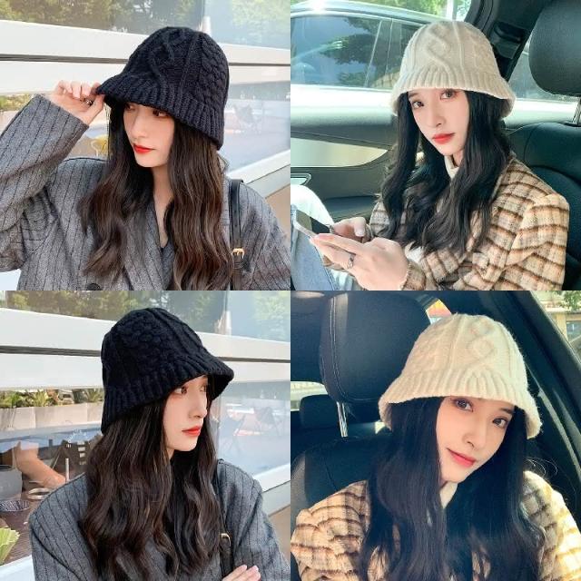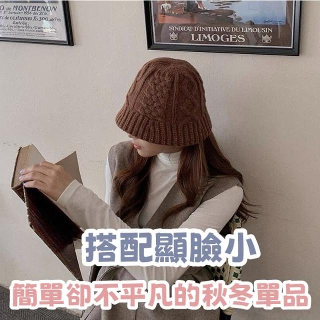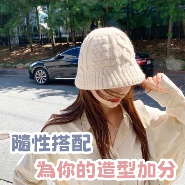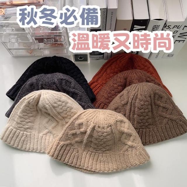HONG JIN麻花紋針織帽 麻花紋 針織帽 帽子 毛線帽 秋冬 百搭 保暖 日系 顯臉小 針織 水桶帽 漁夫帽