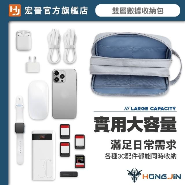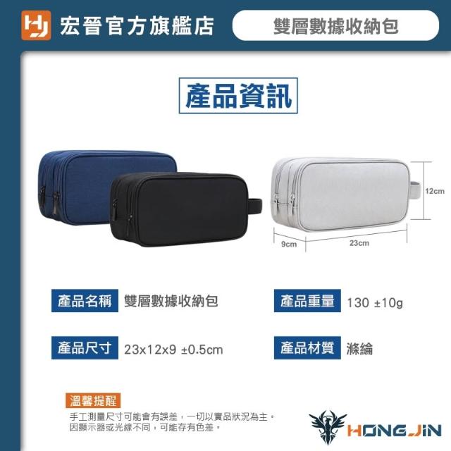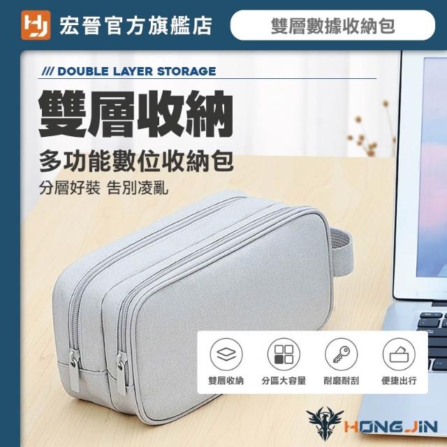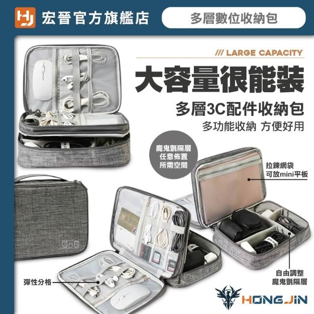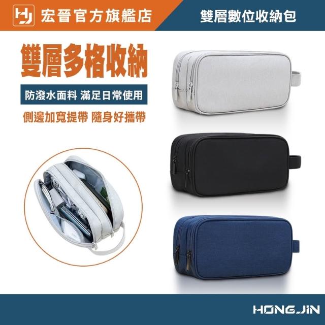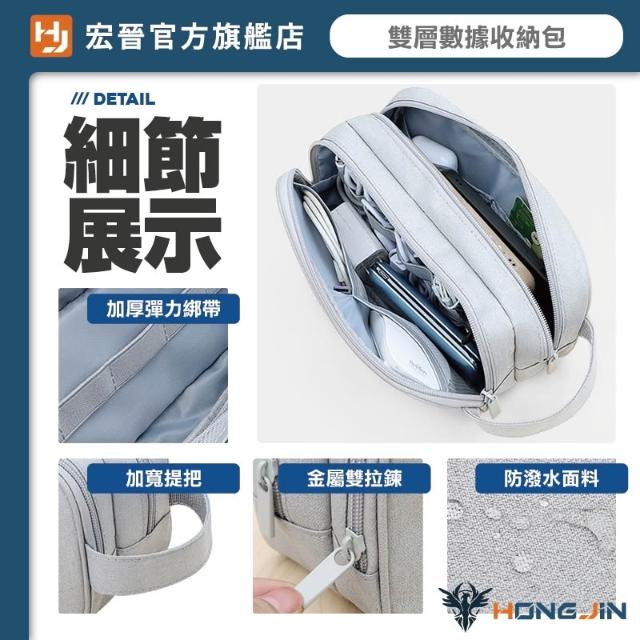 HONG JIN雙層數位收納包 3C配件收納 多個分隔袋 耳機 充電線 充電頭 行動硬碟 行動電源 防潑水提花布 耐磨耐用 方便攜帶