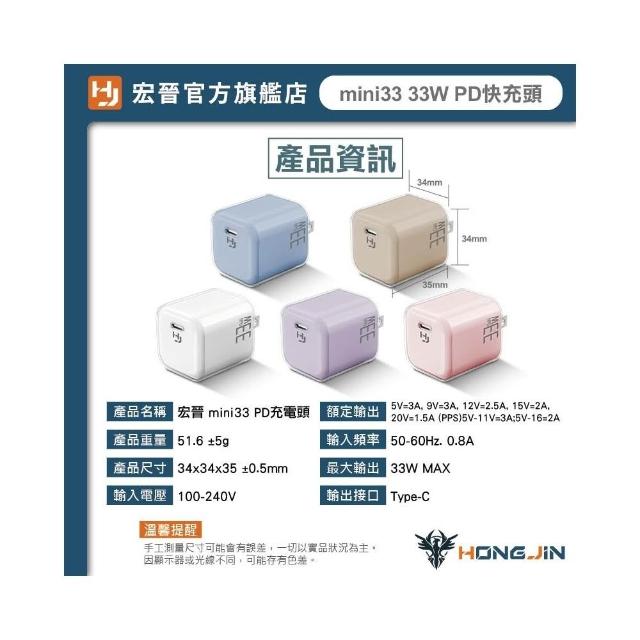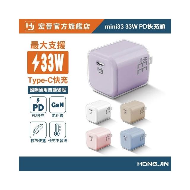 HONG JIN宏晉 Mini PD快充頭 20W 33W 航天級氮化鎵 晶透冰塊質感 多色選擇 安全 充電頭 Type-C 不易發燙